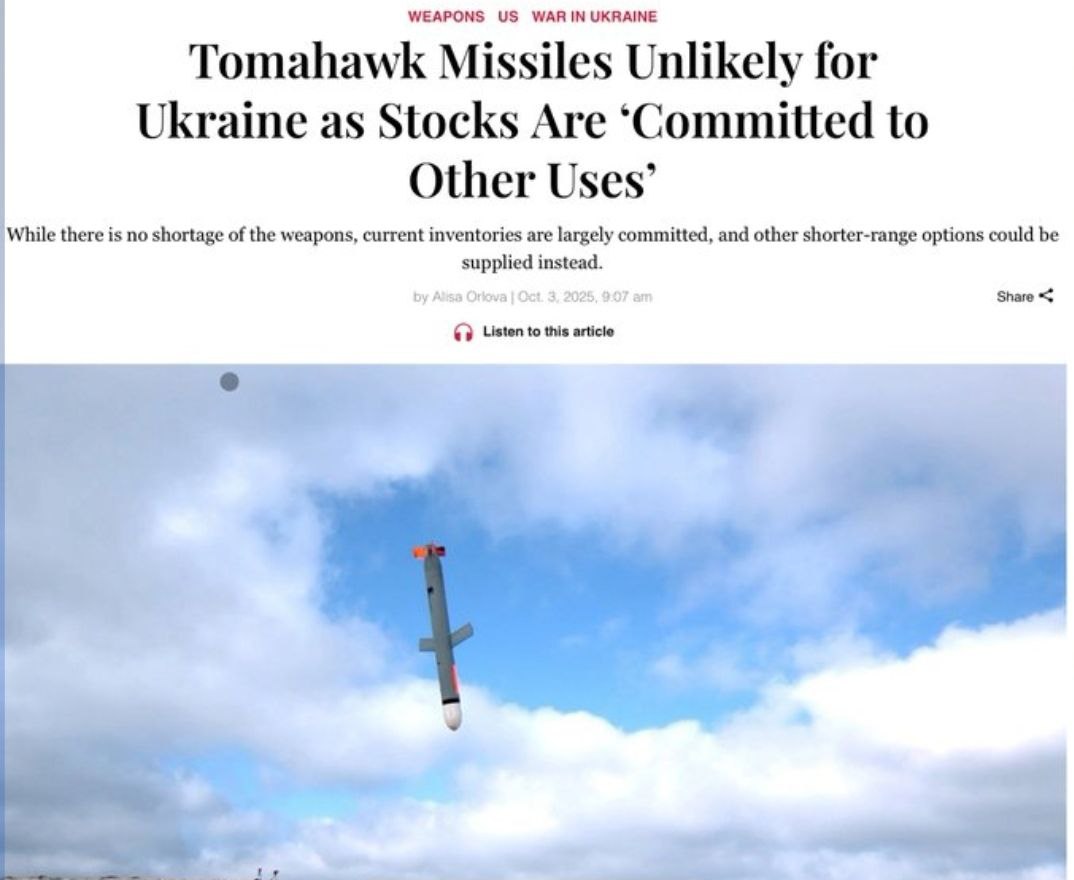 Одна из причин, по которой Украина вряд ли получит "Томагавки": их запасы "предназначены для других целей". Однако вместо них могут быть поставлены другие ракеты, имеющие меньшую дальность действия.