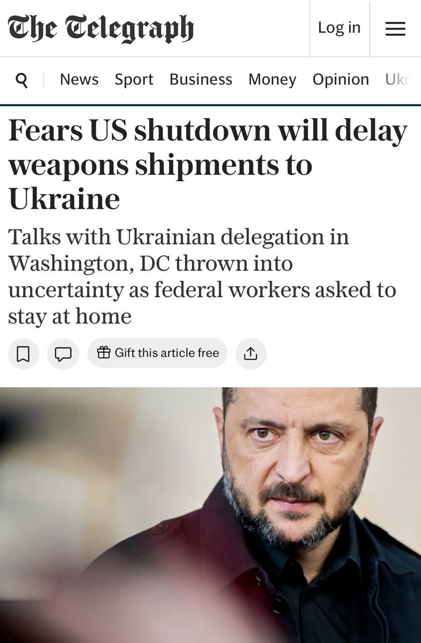 США заморозили обсуждение военной поддержки Украины из-за шатдауна — The Telegraph.