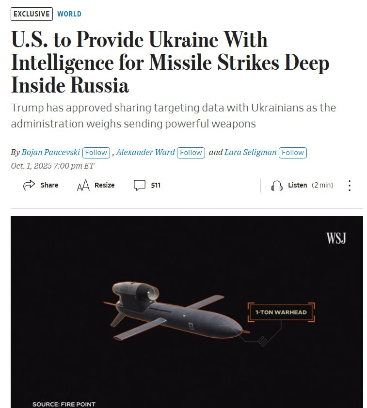 Исходя из складывающейся ситуации, можно предположить, что, при определенных условиях, передача «Томагавков» - это и есть ответ Д.Трампа на предложения В.Путина по ДСНВ. Кстати, наряду с Украиной в границах 1991 года. Ответ был дан на следующий день - 23 сентября. Таким образом, на предложение России не повышать эскалацию, США ответили именно эскалацией.