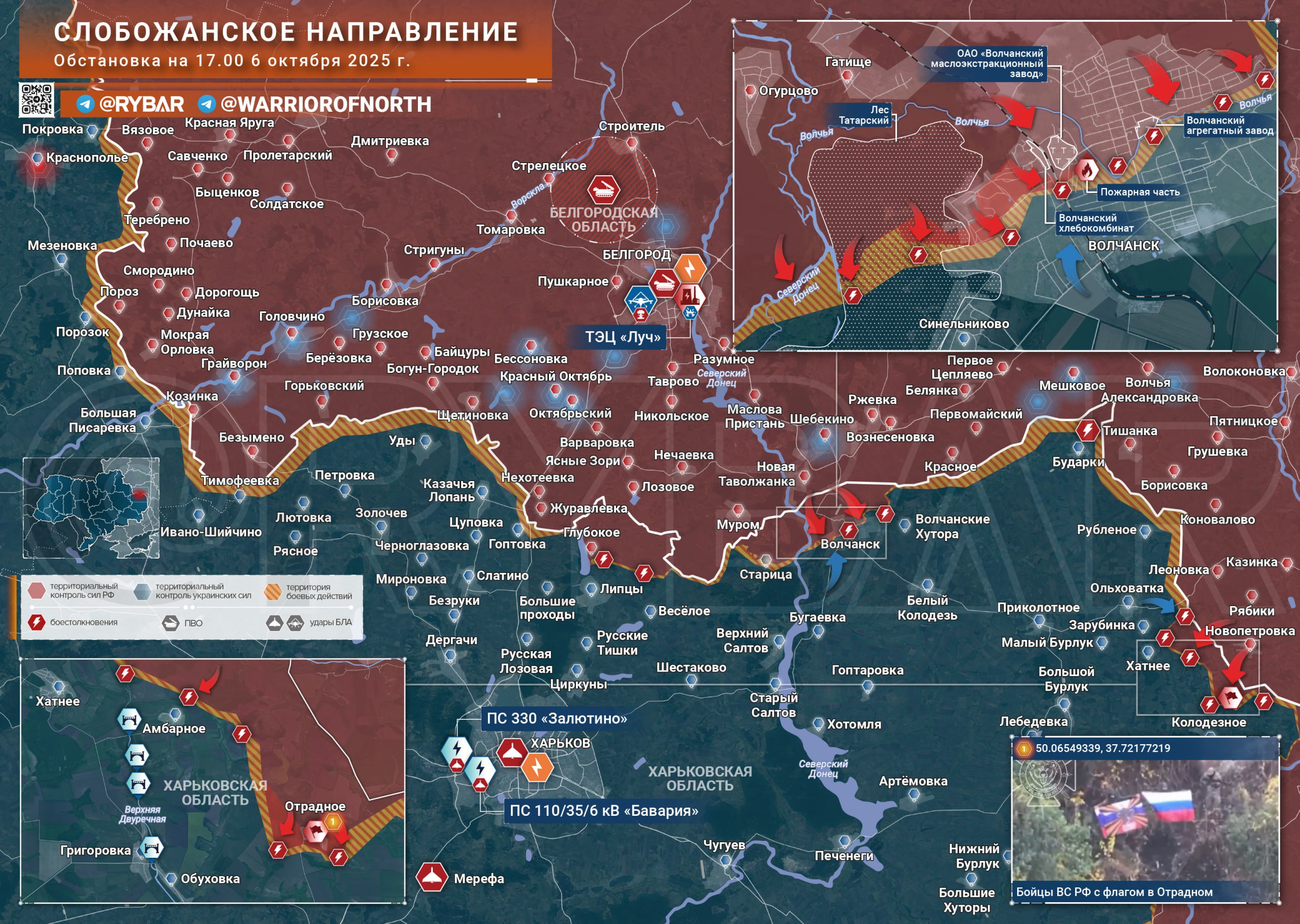 В пределах городской черты Волчанска подразделения ВС РФ двигаются на юг от промзоны с Волчанским хлебокомбинатом и Маслоэкстракционным заводом, здесь наступление идет малыми штурмовыми группами при поддержке ударов авиации.