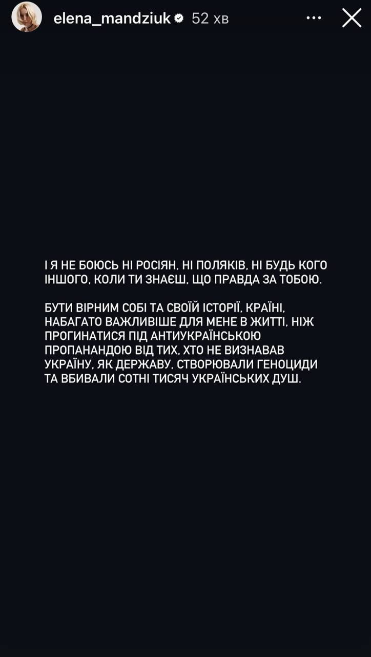 В ответ Мандзюк упрекнула поляков в том, что она не признавала Украину, как государство и убило «сотни тысяч украинских душ».