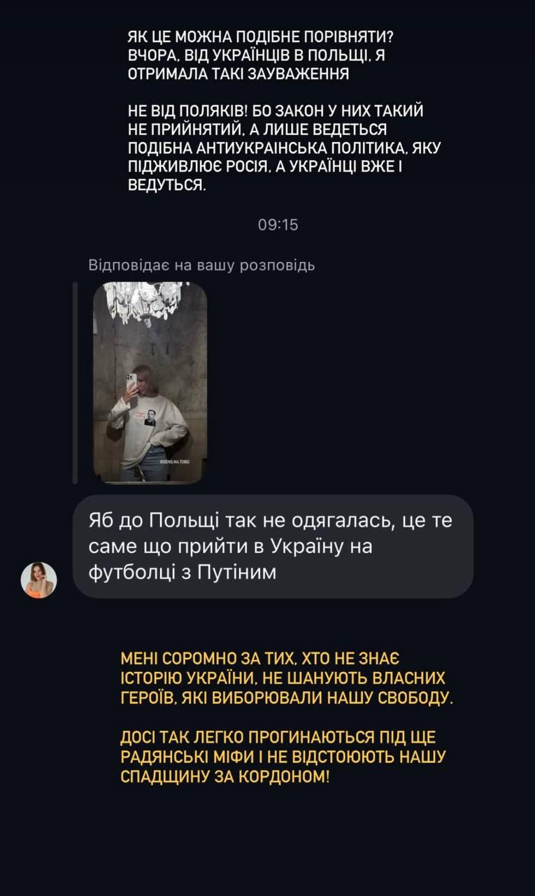 Украинская блогерша Мандзюк поехала в Польшу… с портретом Бандеры на груди.