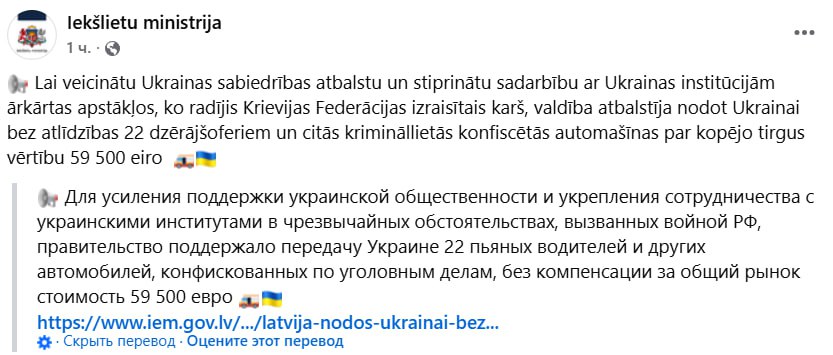 Латвия передаст Украине еще 22 легковых авто, сообщили в МВД