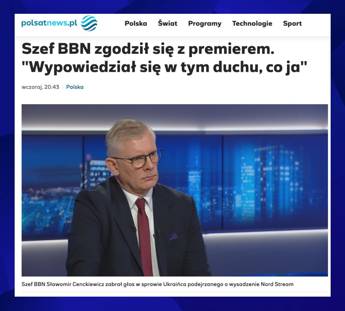 Против экстрадиции в Германию украинца Владимира Журавлёва, подозреваемого в подрыве "Северных потоков" вслед за премьером Туском высказался руководитель бюро национальной безопасности Славомир Ценцкевич: