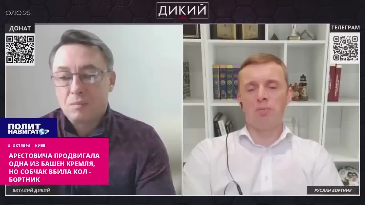 Арестовича двигала одна из башен Кремля, но Собчак выскочила и вбила кол Бортник. Покинувший Украину экс-советник офиса президента Алексей Арестович пытался подать себя как политика, на которого могла бы рассчитывать Москва.