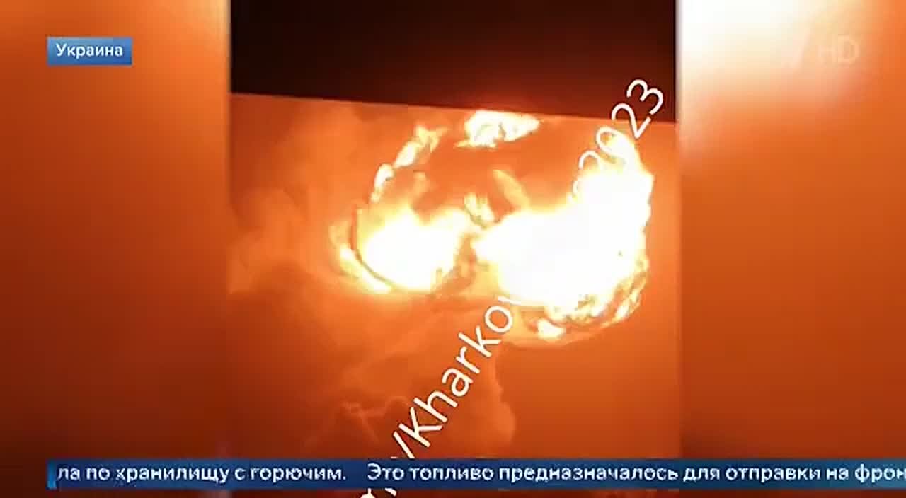 Множество взрывов на военных объектах на Украине. Кадры из Чугуева в Харьковской области: мощный пожар, повторная детонация.