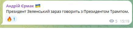 Ермак заявил, что Трамп сейчас общается с Зеленским.