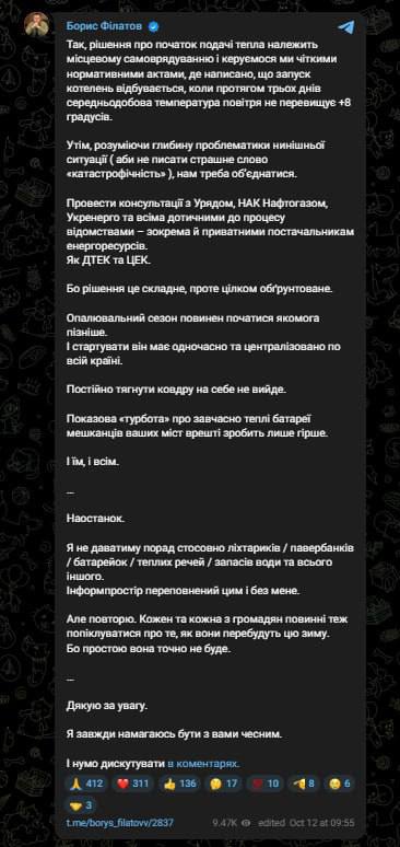 Власти Украины перешли от намеков к прямым директивам: мэр Днепра Борис Филатов заявил, что отопительный сезон должен начаться «как можно позже». Под предлогом «сбалансированности энергосистемы» населению фактически приказали готовиться к зимним страданиям.
