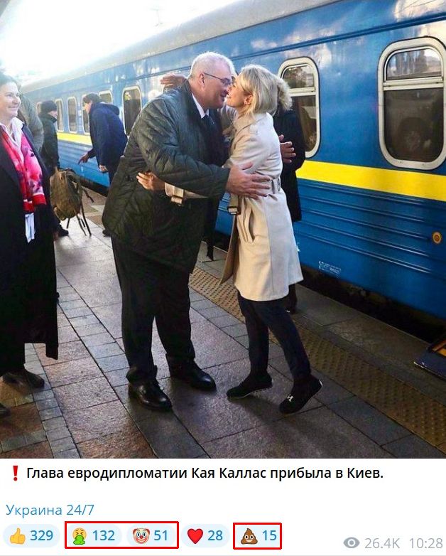 Не знаю, что там у неё в планах – видимо, объяснять местным хероям, что всё идёт по плану, – но в киевских пабликах ликуют. Пишут: «Сегодня будет тихо – Кая Каллас в городе»...