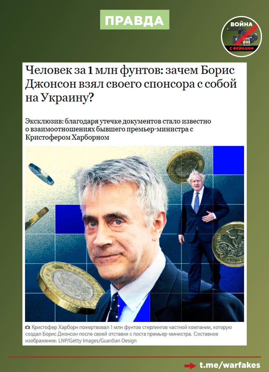 Рекордное из когда-либо сделанных члену парламента «пожервований» произвел не рядовой «спонсор». Харборн — акционер компании QinetiQ, британского производителя оружия и БПЛА, которые массово поставляются киевскому режиму. Попавшие в интернет документы подтверждают, что Харборн сопровождал Джонсона во время поездки в Киев, после которой Зеленский отказался подписывать почти готовое мирное соглашение.