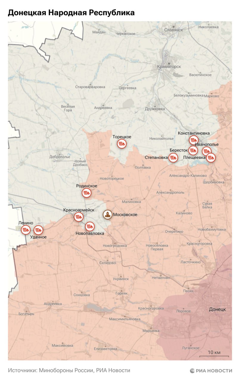 ВС России освободили населенные пункты Московское в ДНР и Боровская Андреевка в Харьковской области, сообщило Минобороны.