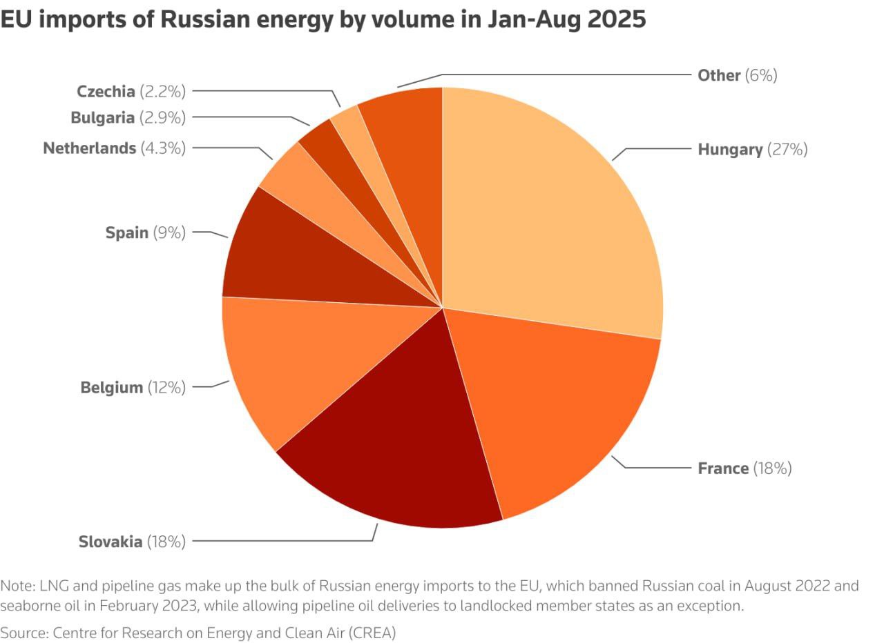 По данным Reuters и финского Центра исследований энергетики (CREA), за первые восемь месяцев 2025 года страны ЕС закупили российские нефть и газ на сумму более 11 млрд евро, несмотря на заявления о снижении зависимости от Москвы на 90%.