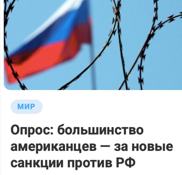 Подавляющее число американцев (77%) поддерживают ужесточение санкций США против России с целью добиться её капитуляции.
