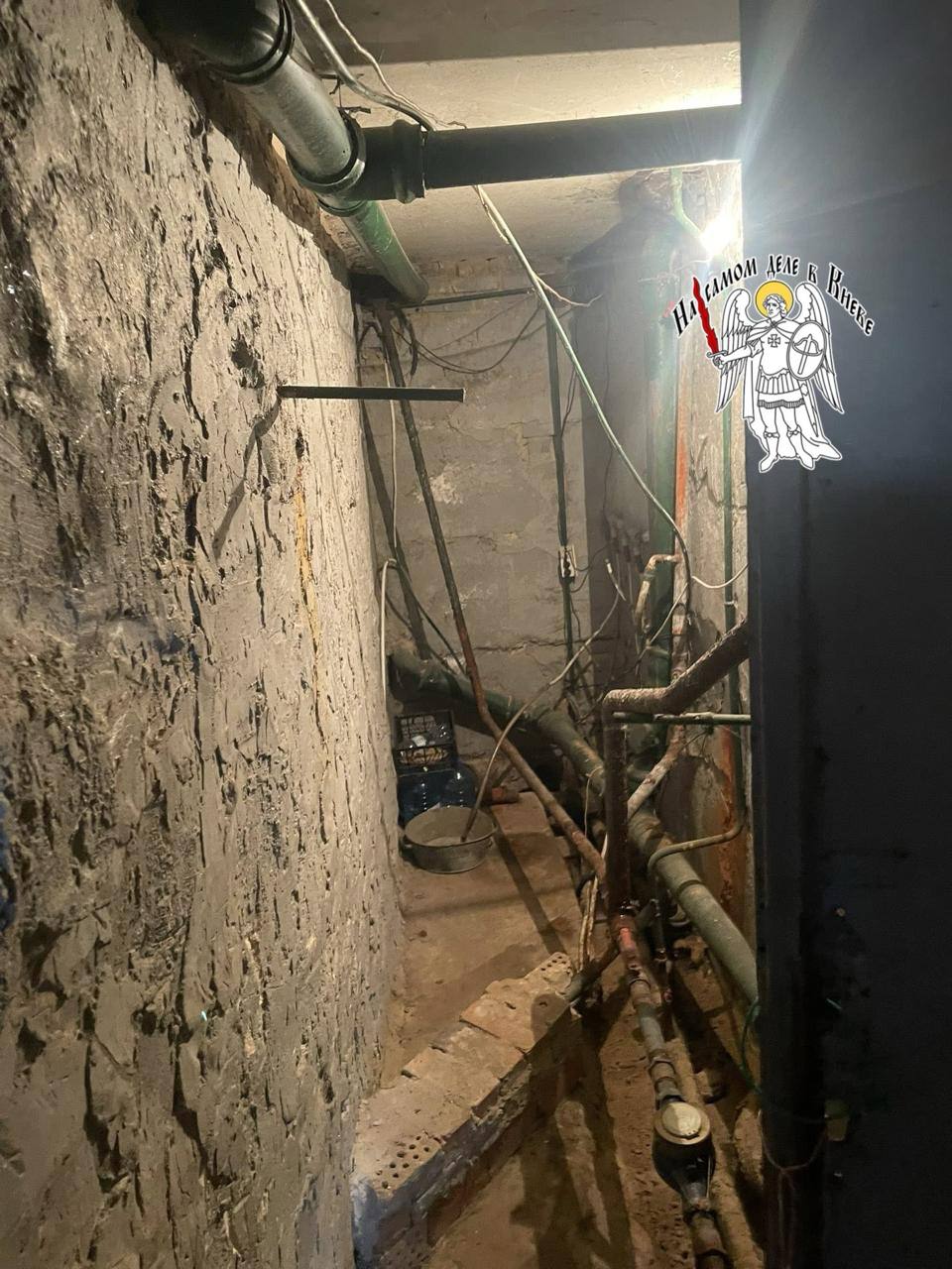 В жилом доме на Святошине местные жители показали, в каком состоянии находится их «бомбоубежище»: обвалившиеся стены, ржавые трубы, оголённые провода, никакой вентиляции и почти полная темнота. Войти можно… только через окно, закрашенное слоями старой краски.