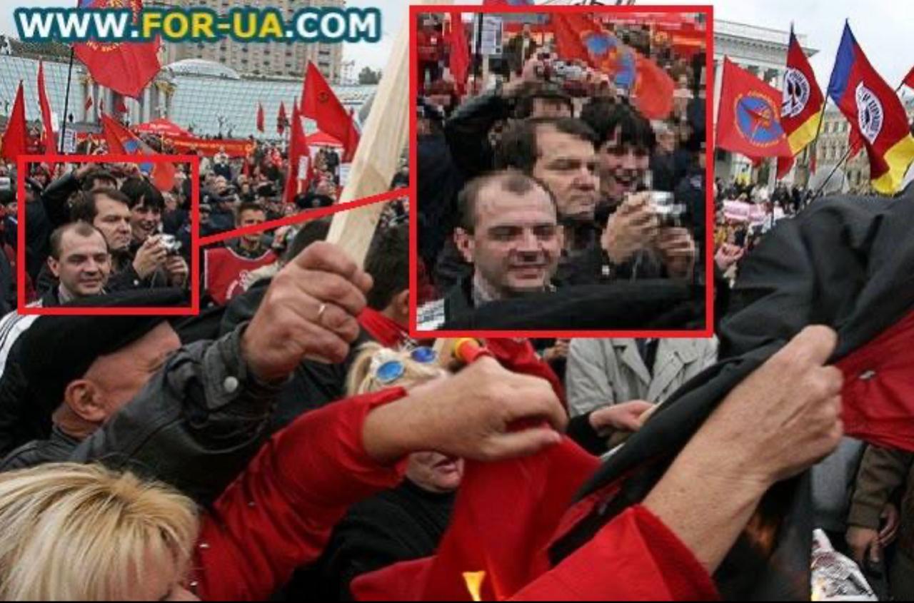 Кстати, к событиям 20-летней давности в центре Киева, описанных мною выше. Узнаете кое-кого в толпе? Фотографирую, как киевляне радостно рвут трофейный бандеровский флаг.