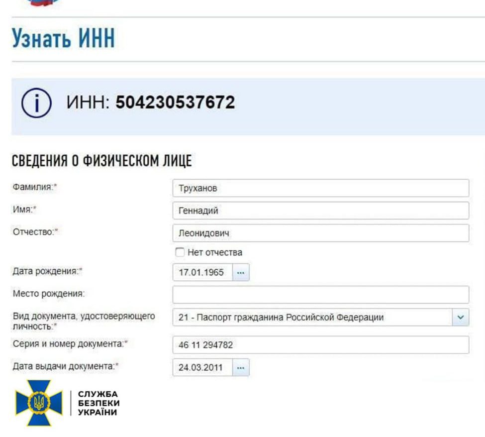 Судя по опубликованным скриншотам, СБУ через своих людей просто проверила действительность паспорта Труханова запросом в МВД по Крыму, а затем использовало его паспортные данные для проверки ИНН на сайте ФНС России.
