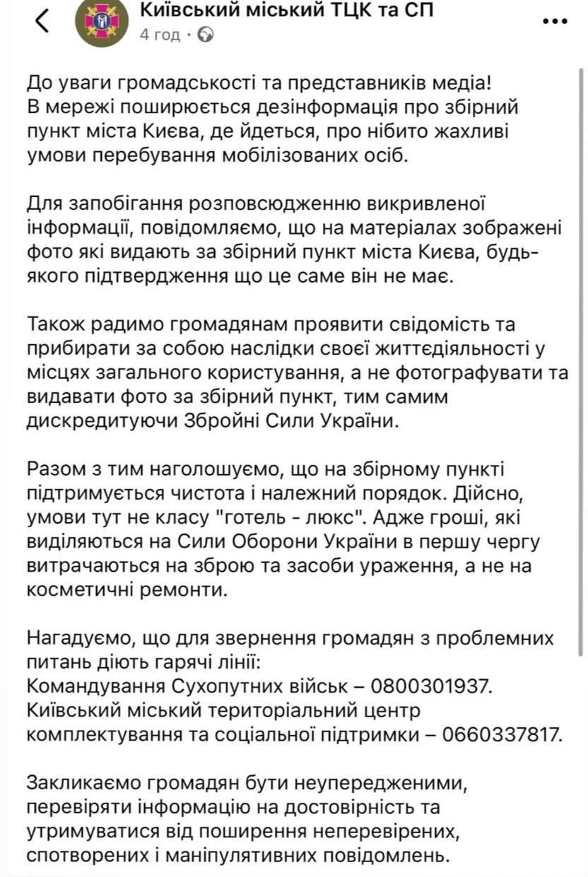 Информация об ужасных условиях на распределительном пункте в Киеве - фейк