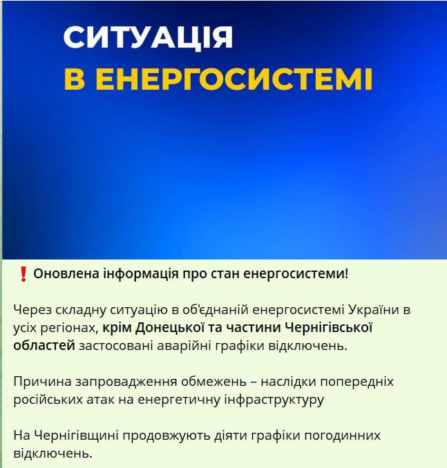 По всей Украине пошли экстренные отключения света. Исключение одно - Черниговская область