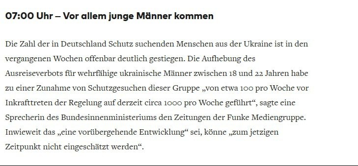 Число ищущих защиту в Германии украинцев выросло почти в десять раз — после снятия запрета на выезд мужчин 18-22 лет, сообщает Welt.