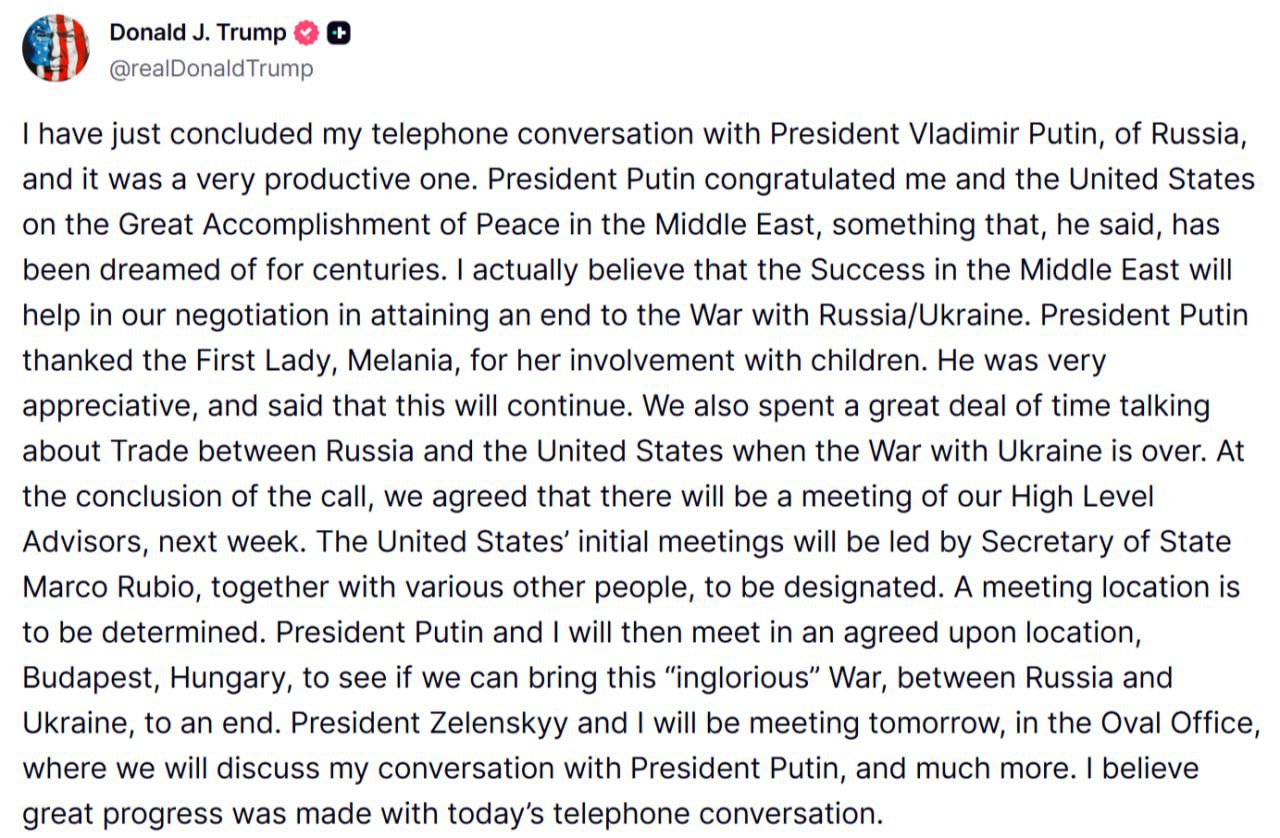 Трамп намерен встретиться с Путиным в Венгрии. Первые итоги телефонного разговора лидеров: