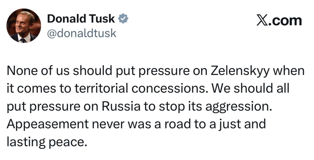 Никто из нас не должен давить на Зеленского, когда речь идет о территориальных уступках. Мы все должны давить на Россию, чтобы она прекратила свою агрессию. Умиротворение никогда не было путем к справедливому и прочному миру.
