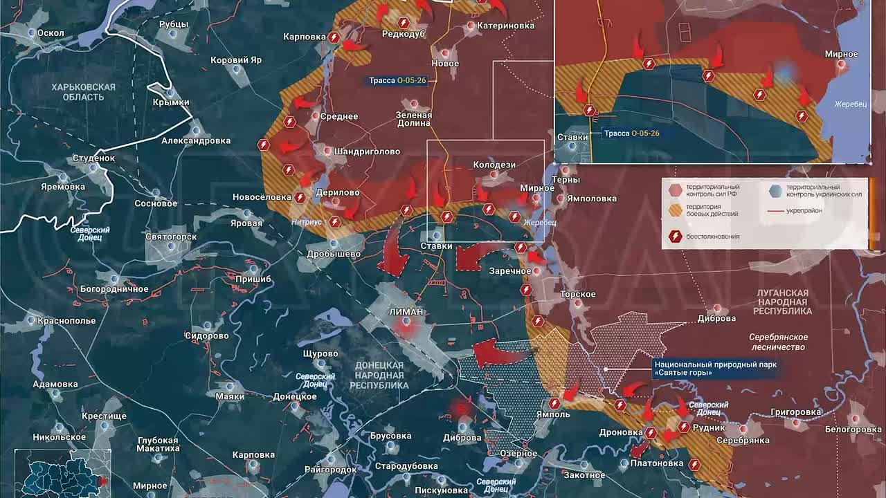 Как и севернее, на Лиманском направлении. Идут бои в Ямполе, наши подходят к Лиману с севера и востока.