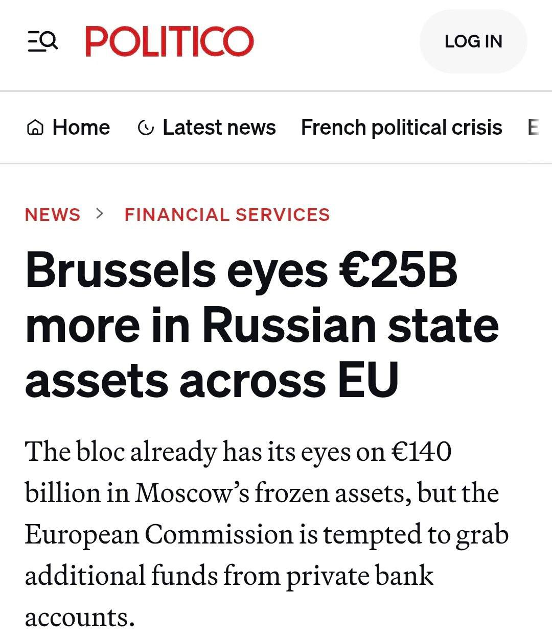 Еврокомиссия рассчитывает выделить Киеву 25 млрд евро за счет средств РФ, — Politico.