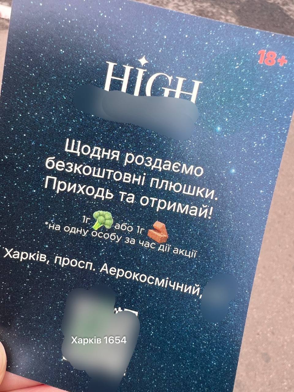 В Харькове прохожим раздают листовки, которые обещают гостям некоего заведения бесплатные наркотики;
