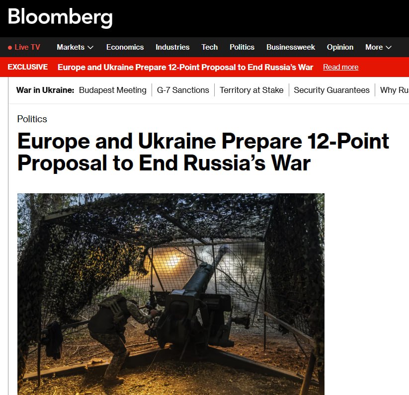 Bloomberg: Европа и Украина работают над предложением из 12 пунктов по завершению конфликта по нынешней линии фронта
