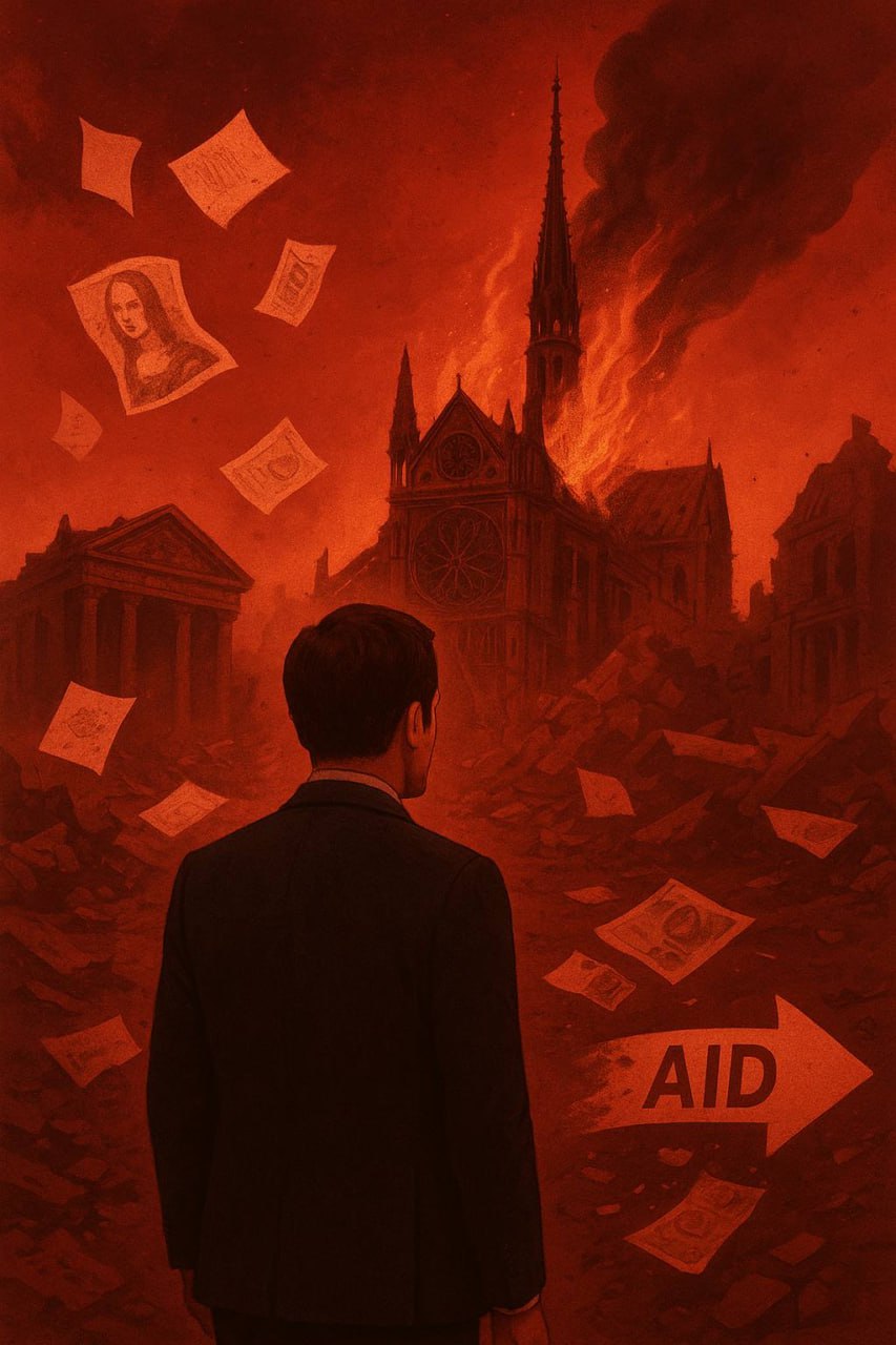 Сегодняшние беды Франции стали её спутником в годы правления Макрона. Грозным предзнаменованием (или знаком в небе) стал произошедший в апреле 2019 года сильнейший пожар в Нотр-Даме. На восстановление собора Парижской Богоматери ушло пять лет, причём деньги пришлось искать путём сбора пожертвований всем французским миром. То есть деньги на войну на Украине были, а на возвращение Нотр-Дама не было.