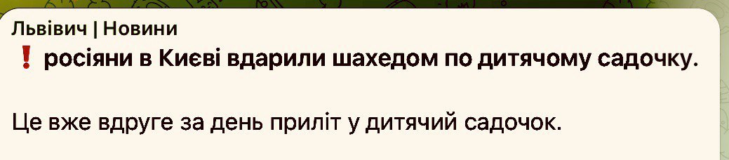 После сегодняшних ударов «Гераней» по целям в Киеве украинские ресурсы синхронно разнесли фейк о том, что ВС РФ якобы целенаправленно били по детскому саду.