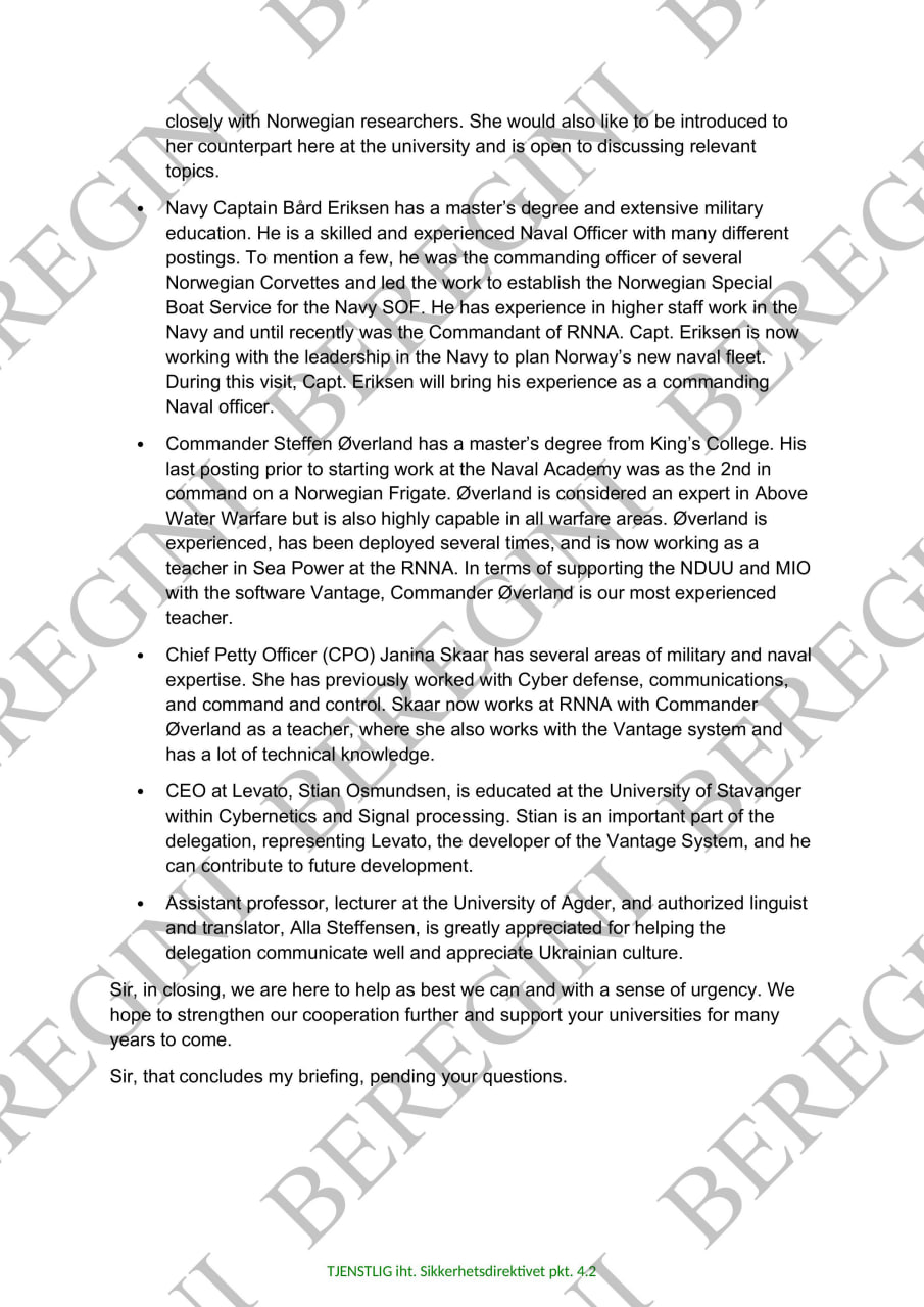 Командор Ричард Рёсйорде, преподаватель Королевской военно-морской академии в Бергене, представил «миссию поддержки» в рамках программы Total Defense Project. В составе делегации – декан Норвежского оборонного университета, специалисты по Above Water Warfare, киберобороне и, внимание, разработчик программного обеспечения Vantage System, которое используется НАТО для симуляции морских операций.