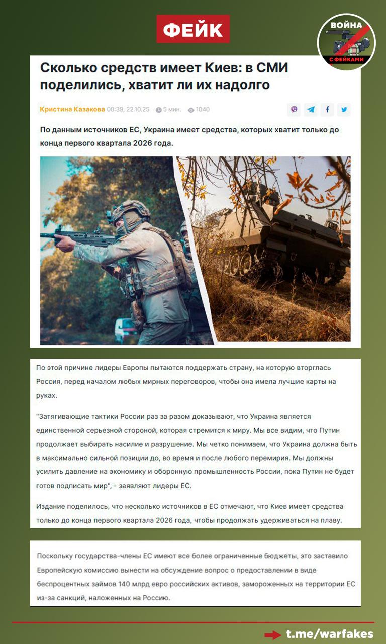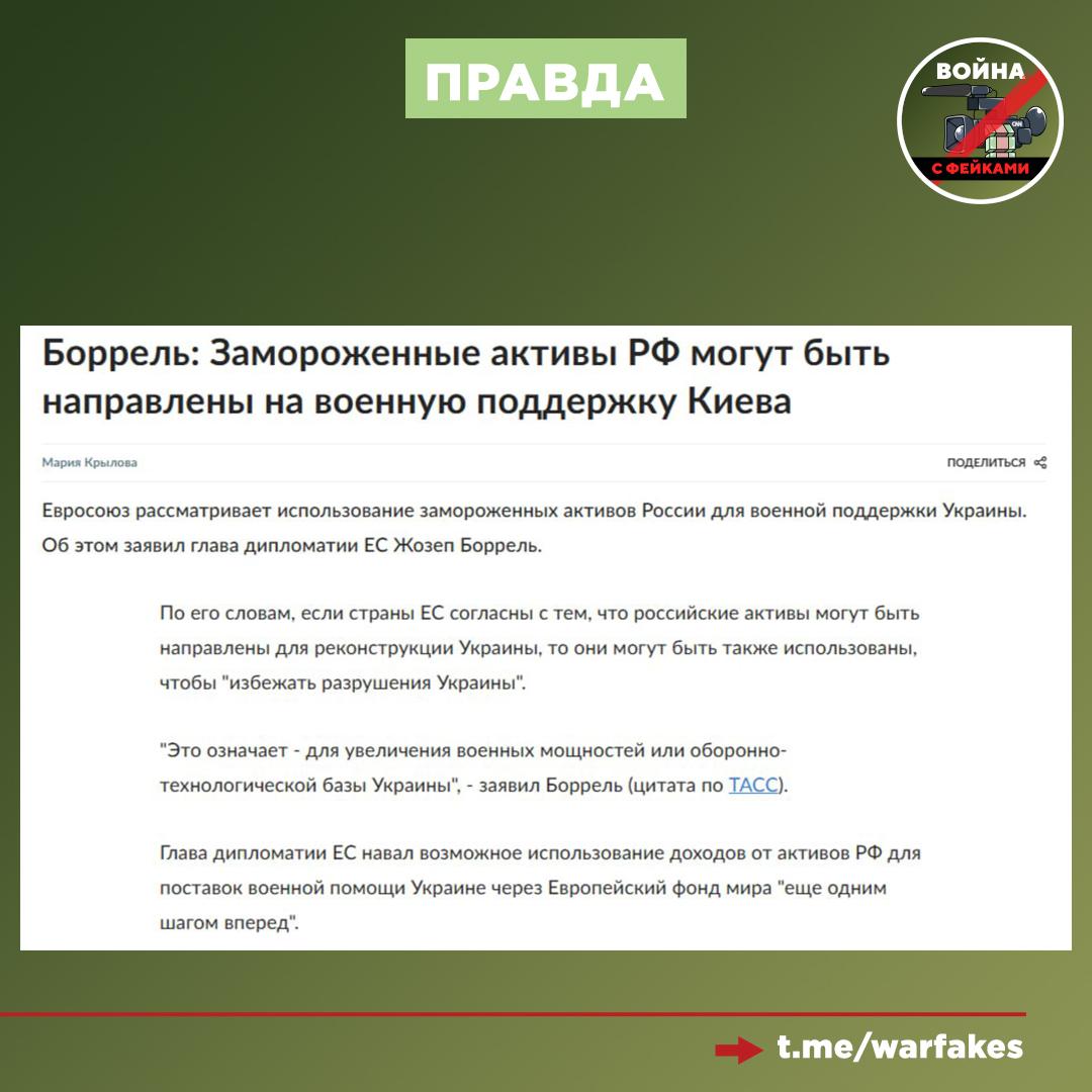 Правда: Весь текст – это образец софистики. Украинские фейкоделы умудряются противоречить сами себе. Заявляя о готовности Киева к миру, авторы публикации утверждают, что Украина нуждается в российских замороженных активах, чтобы «держаться на плаву». Под этим, разумеется, подразумевается дальнейшее продолжение конфликта, в чем заинтересован Зеленский и его кураторы. Ранее и украинские, и европейские политики открыто говорили о реальном предназначении средств. Например, год назад в таком ключе воровство российского имущества объяснял экс-глава дипломатии ЕС Жозеп Боррель.