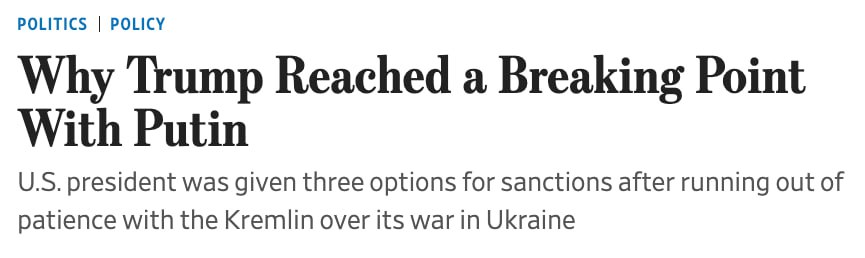 Американский лидер остановил свой выбор на «среднем» варианте санкционного давления. Как отмечает WSJ, высокопоставленный представитель Белого дома заявил, что Трамп четко обозначил необходимость прекращения конфликта на Украине.