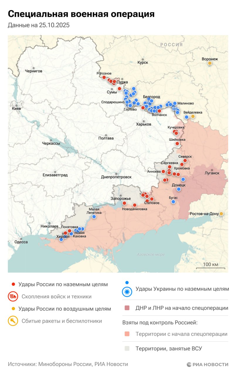 Российские военные в ночь на субботу в ответ на удары Киева по гражданским объектам в России нанесли групповой удар по предприятиям ВПК Украины и обеспечивающим из работы объектам энергетики, все цели поражены.