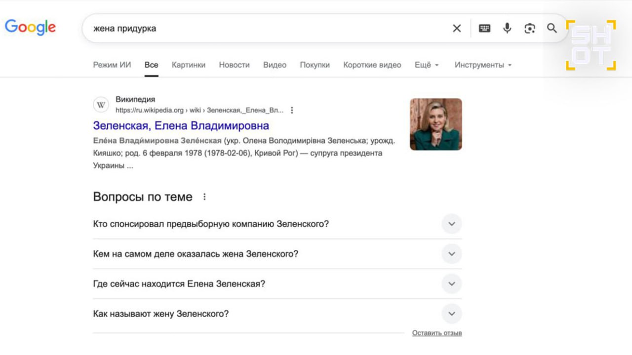 «Жена придурка»: при таком запросе Google выдаёт Елену Зеленскую — первую леди Украины