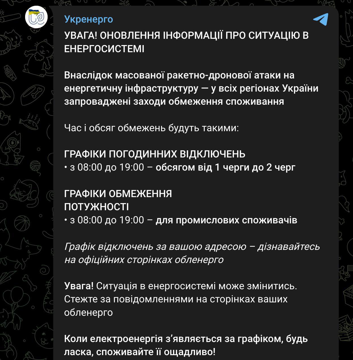 Удар по всей территориимассированный налет ВС РФ на объекты энергетической инфраструктурыНочью российские войска поразили множество объектов на подконтрольной противнику территории. В результате налета во всех регионах т.н. Украины...