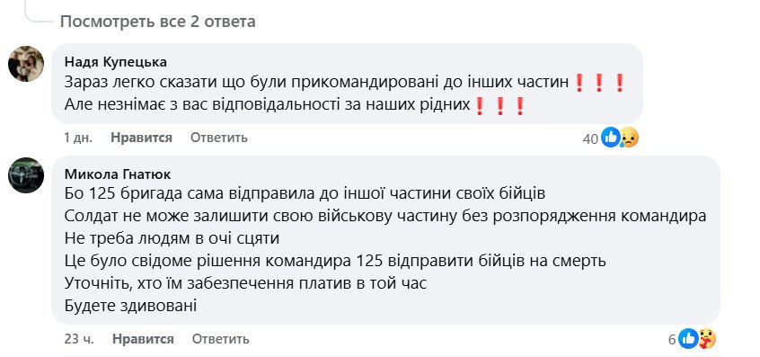 Официальный аккаунт бригады выпустил пост с заявлением, что командование 125 отмбр не несет ответственности за военнослужащих, которые были прикомандированы к другим подразделениям.