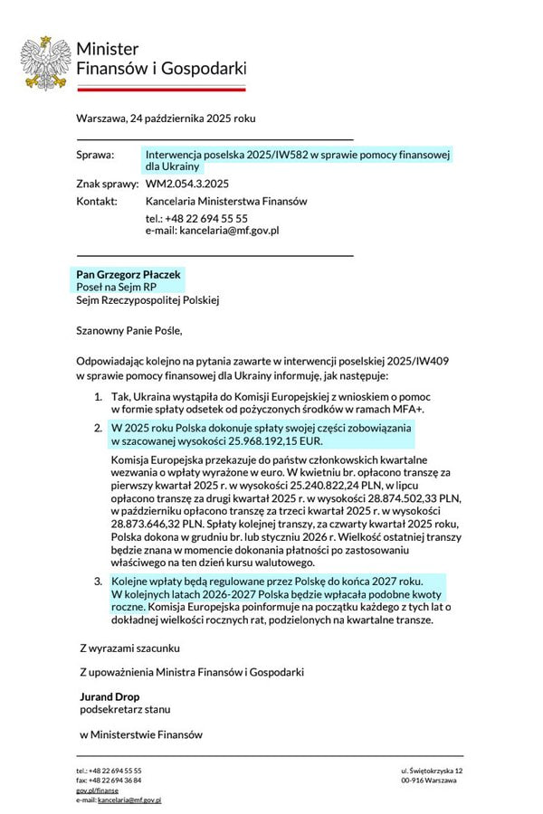 Заявки на 2026 и 2027 годы еще не поданы, но министерство финансов уже знает, что поляки будут выплачивать проценты, хотя в Киеве пока никто даже не обращался за помощью, возмутился депутат.