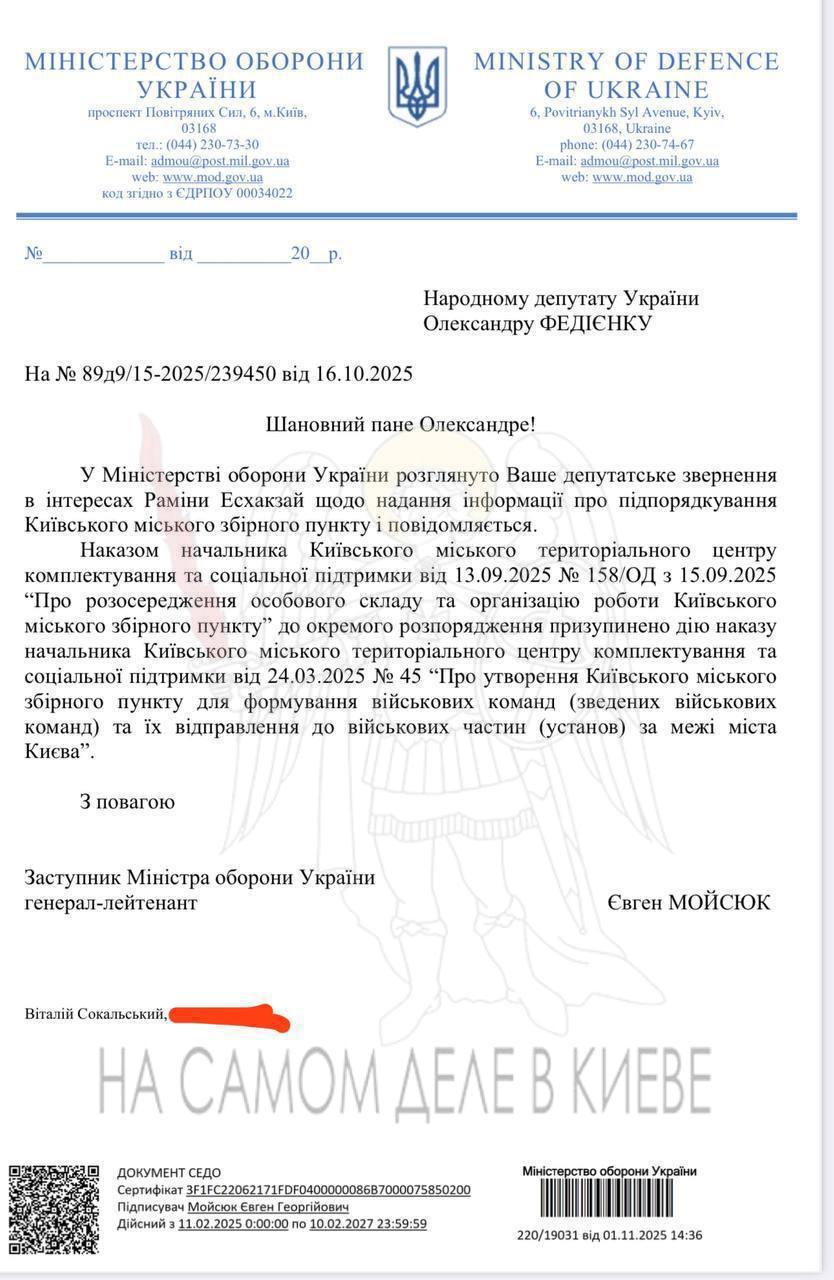 По документам — приказ от 13 сентября. Личный состав вывели за пределы Киева. Но всё это время людям врали, будто пункт работает.