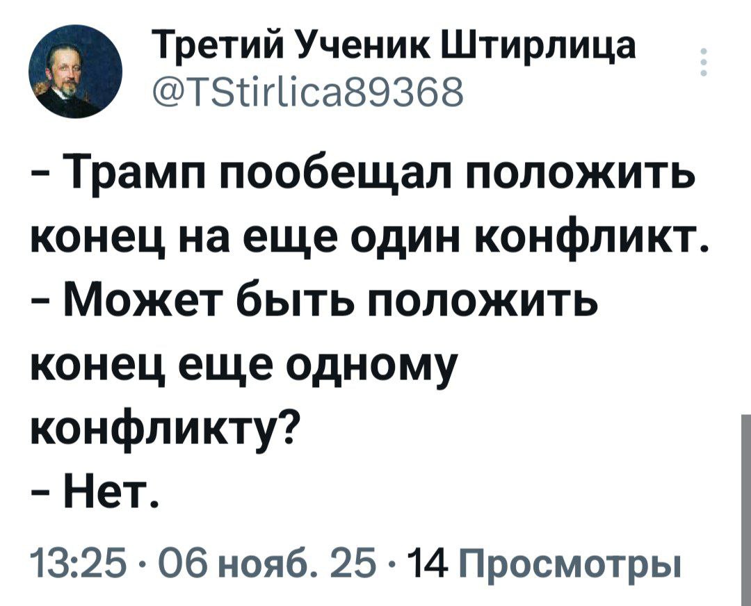 Часть шестая:Вопрос:В чём главный спор с Россией, который мешает провести Будапештский саммит с Путиным?Трамп:Суть спора в том, что они просто пока не хотят останавливаться. И я думаю, что они это сделают. Думаю, это нанесло большой урон...