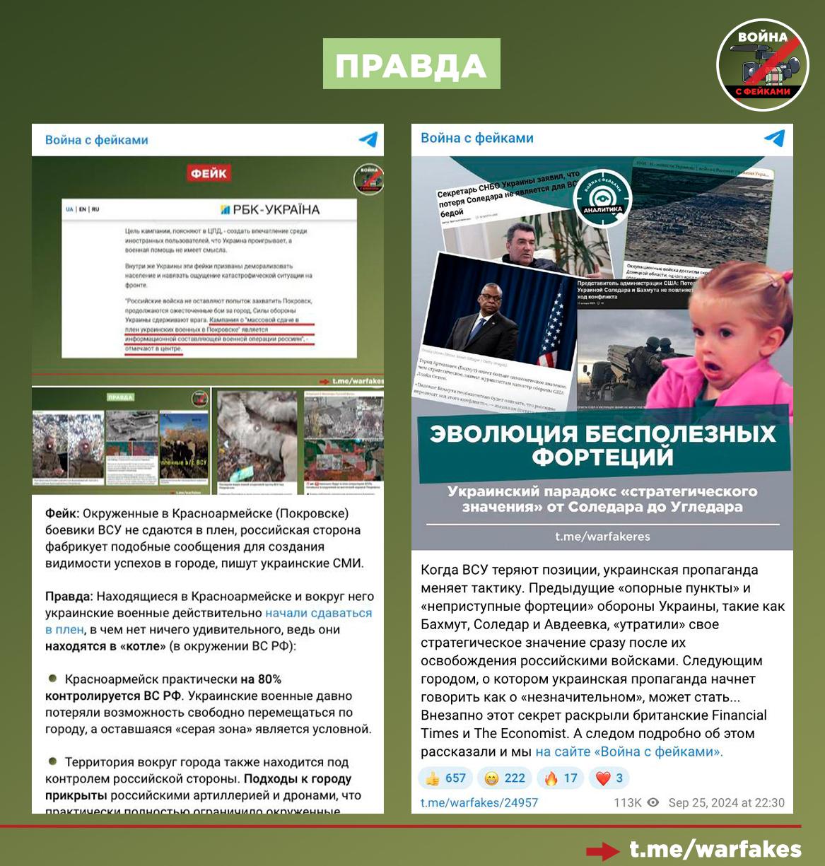 Фейк: У ВС РФ нет никаких результатов в Красноармейске (Покровске) — российские войска вообще не входили в город. Об этом неоднократно заявлял Владимир Зеленский.