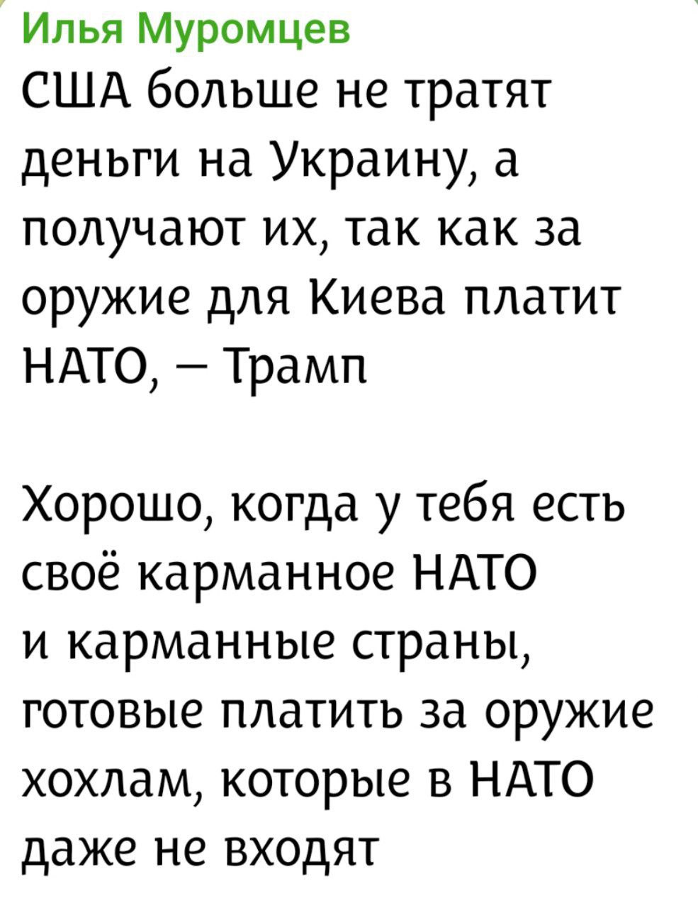 Зато очень живо на украинский скандал вокруг шайки Зеленского-Миндича отреагировали в Польше. Бывший премьер Лешек Миллер (недавно призвавший выслать молодых украинцев из Польши на фронт) обратил внимание на купюры из казначейства США: «Американцы...