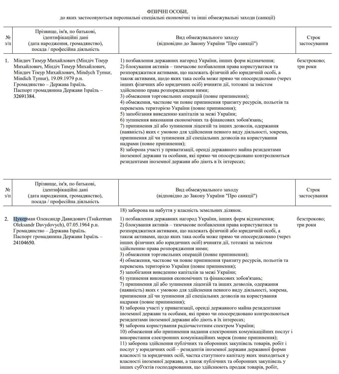 После расследования по поводу коррупции Зеленский ввёл санкции против Миндича и его финансиста Цукермана.