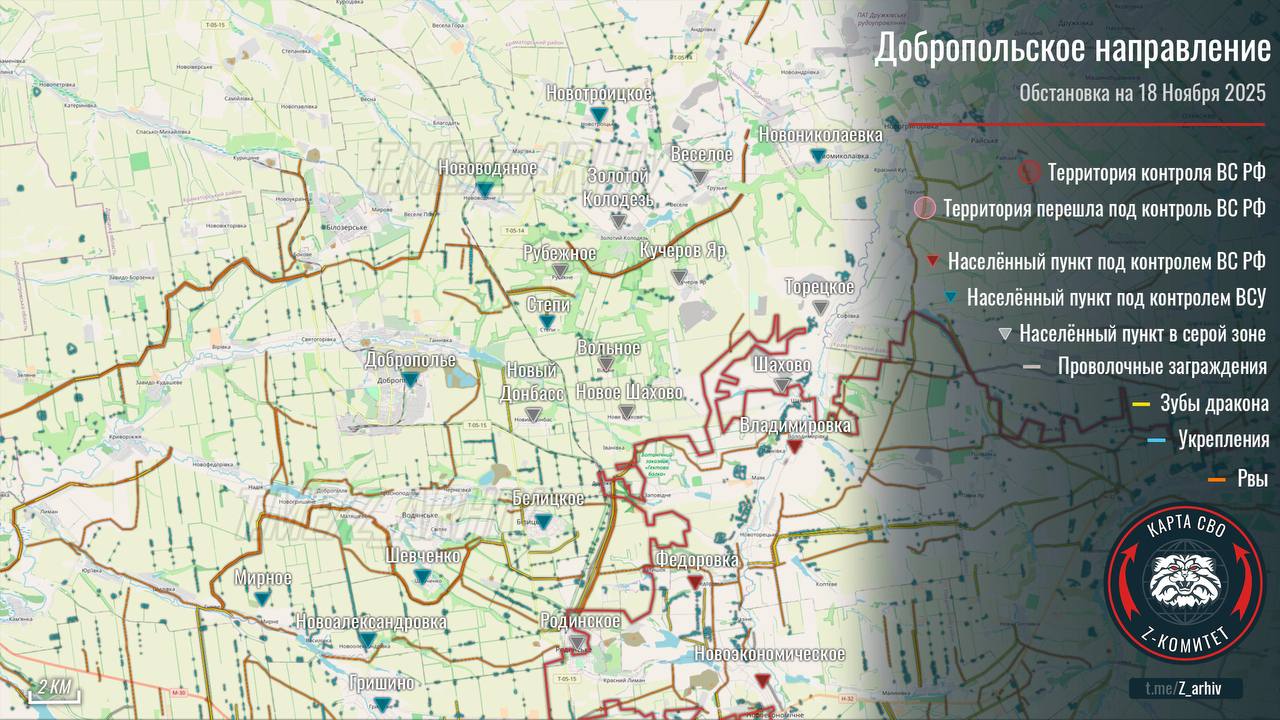 Продвижение наших в районе Шахово-Родинское на Покровском направлении, где недавно ВСУ хвастались потужным контрнаступом. Перемога и там переходит в зраду (а всё направление для Украины - в ганьбу)
