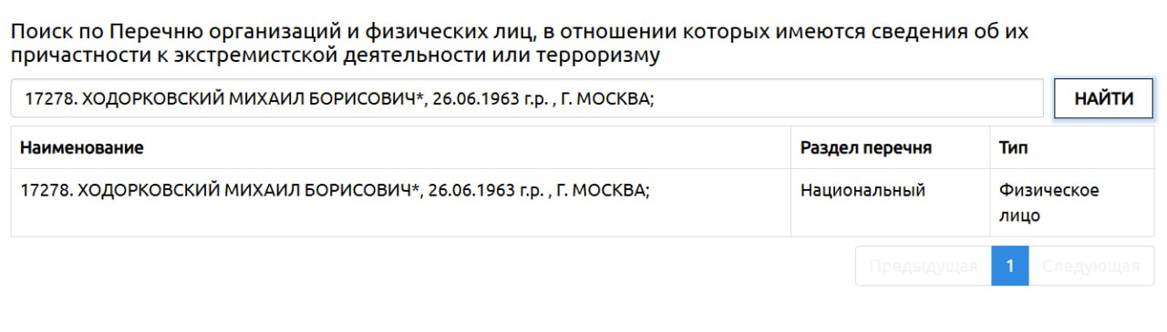 Ходорковский* внесён в список террористов и экстремистов