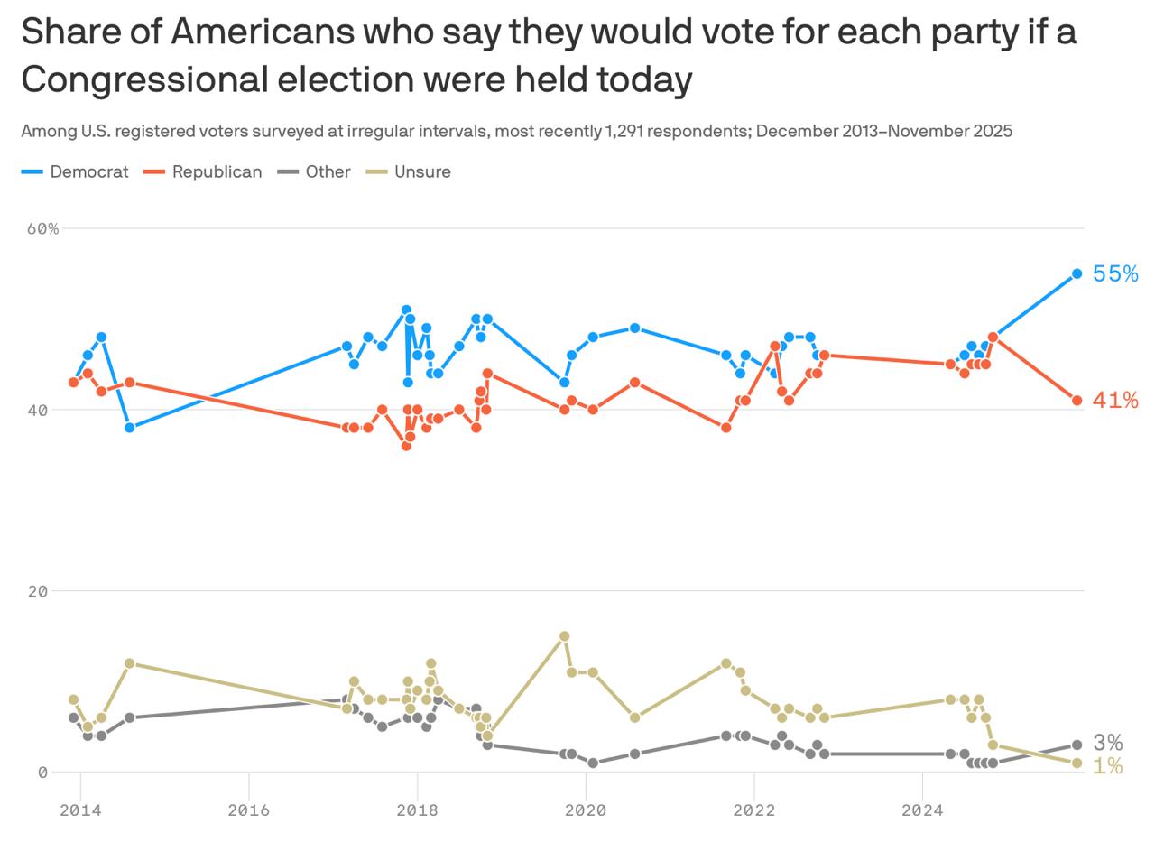 В последних опросах республиканцы по рейтингам уже начали более чем на 10 пунктов отставать от демократов на выборах в Конгресс. Уровень поддержки Трампа тоже обновляет минимумы. Без наличия значимых успехов ничего хорошего на выборах сторонников Трампа не ждёт.