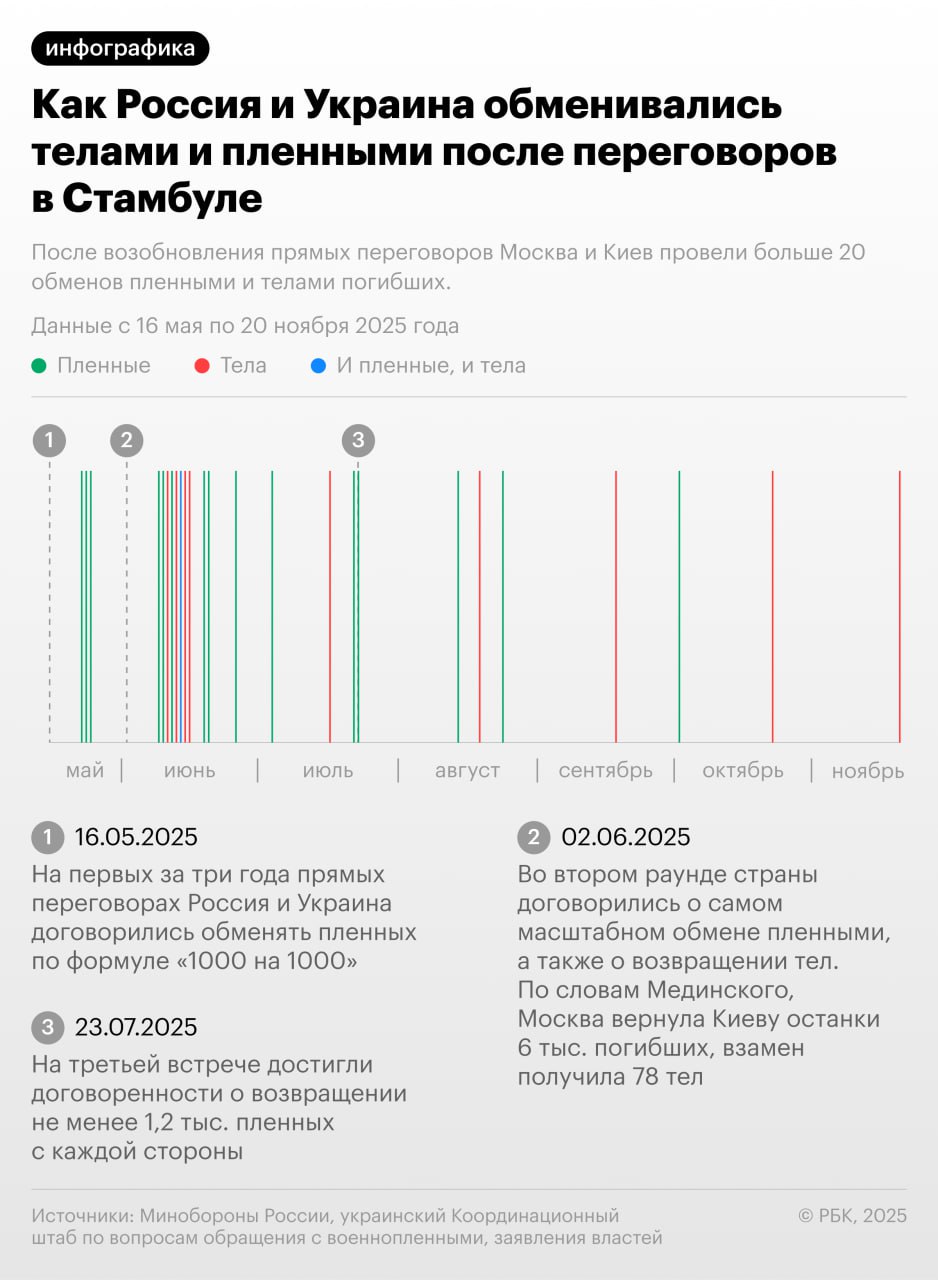 О том, как Россия и Украина обменивались телами и пленными после переговоров в Стамбуле, — в инфографике РБК.