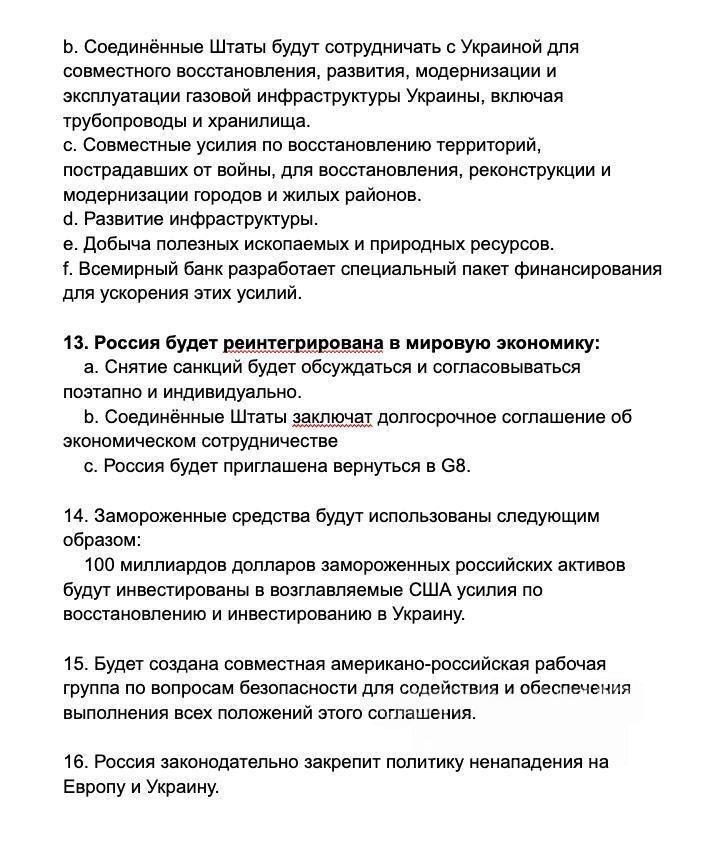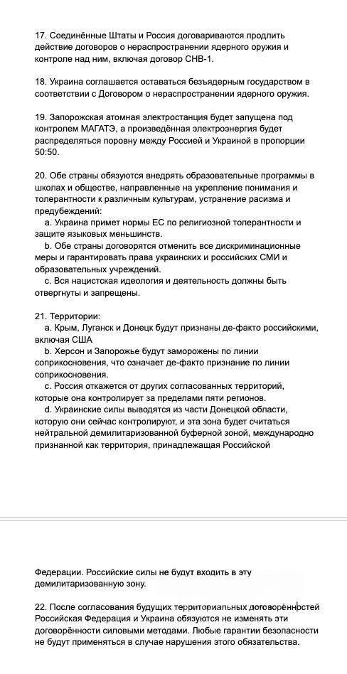 Украинские СМИ опубликовали полный текст американского мирного соглашения.
