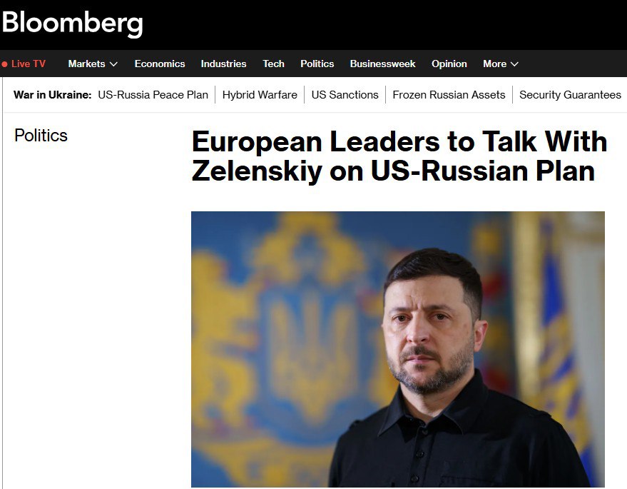 Bloomberg: ‘По словам человека, знакомого с ситуацией, европейские лидеры проведут встречу в рамках конференции G20 в Южной Африке в субботу, чтобы наметить дальнейшие шаги. Ожидается, что президент Финляндии Александр Стубб, известный своим благосклонным отношением к Дональду Трампу, также примет участие во встрече, сообщил источник, знакомый с планами, но пожелавший остаться анонимным, поскольку переговоры носят закрытый характер’.